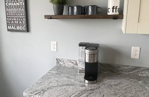 On the main level Sunset Vista Cottage features a large updated kitchen with granite and new appliances and all the cooking utensils you’ll need; a bar top height table for two with a view in the kitchen; a large oak dining table for the crew; a wine fridge; Kuerig coffee maker; washer and dryer; master bedroom with tv and en suite bath; walk in closet; a pack n play for your little one; air conditioning; and a gas grill.