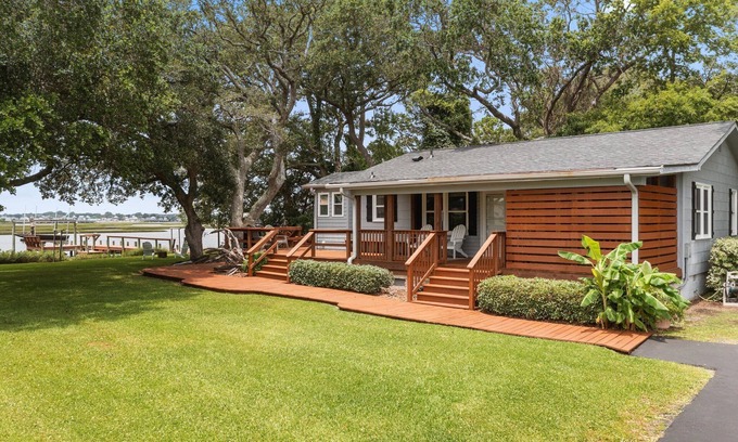 Escape to the serene and picturesque beauty of Eastern North Carolina at this lovely riverfront property! The private dock allows for easy access to the river, while the back yard provides fun outdoor entertainment opportunities with yard games under the shade of a magnificent southern live oak. The views of the river offer amazing sunsets and glimpses of the local wildlife - even dolphins! Bring your fishing rod and catch flounder and red drum off the dock (during high tide in summer and fall months) or use the provided crab pots to catch blue/stone crabs. Our Kayaks are free to use - have fun exploring the river and nearby sound! This is the perfect spot for your next family vacation or fishing trip!