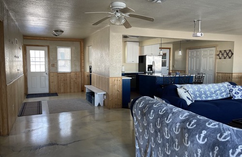 Perfect house for family, friends, fishers, hunters, boaters, snow mobile, ice fishing and more! The master bedroom with a queen bed, room full of bunk beds and numerous amenities, it is sure to please! This open concept ranch, with a newly remodeled kitchen allows you to walk right out to the beach. There is a launch for small boats or jet ski's steps from the house, or public launches for larger boats minutes away. (or in the winter a direct road to the perfect ice fishing spots!) Hours of fun for everyone and features a sunset every night! All the comforts of home with adventures included.
