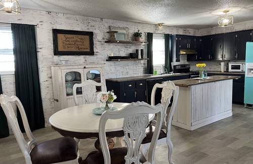 Come enjoy a country retreat with stunning sunsets! This 2 bedroom 1 bath house has just been remodeled and ready for you to make memories. There is a queen bed, king bed, and queen air mattress. The backyard is fenced in with a 10 person underground tornado shelter. We also allow pets and there is plenty of parking for boats.