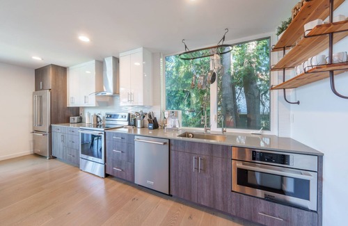 Private rooftop on the fourth floor gives you the most stunning views of Olympics, Bay, SODO and Downtown while you enjoy your comfortable seating under 200year old trees in front of the fire pit or enjoy your meal prepped on the pellet grill. The most relaxing evening you can imagine!