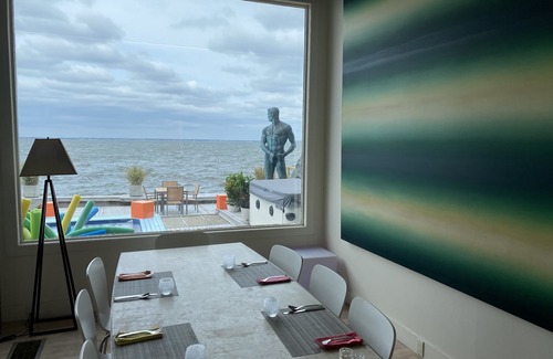 Sunsets on the Bay: Luxe 6-BR in Best Pines Location is located in Fire Island Pines. Sunsets on the Bay: Luxe 6-BR in Best Pines Location provides accommodation, featuring Pet Friendly, TV, Security/Safety, among other amenities. This House features Pet Friendly, TV, Security/Safety, to make your stay a comfortable one.