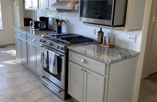 Home includes AC/Heat and whole house generator, newly renovated kitchen, gas range, washer/dryer, refrigerator, microwave, and cable/Wifi. A second stove is in the garage for steaming crabs caught off the dock!