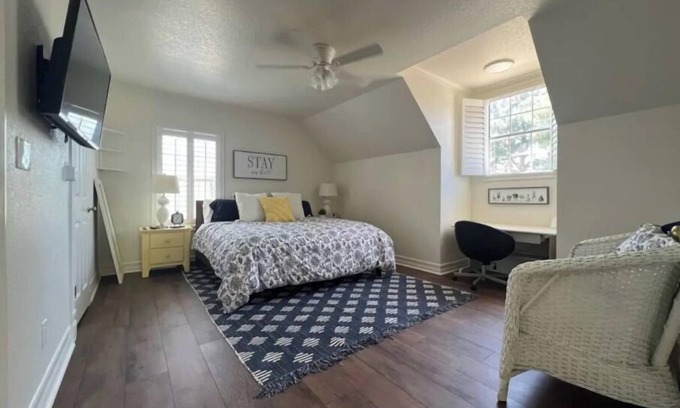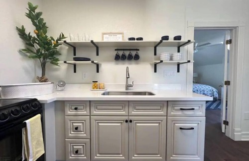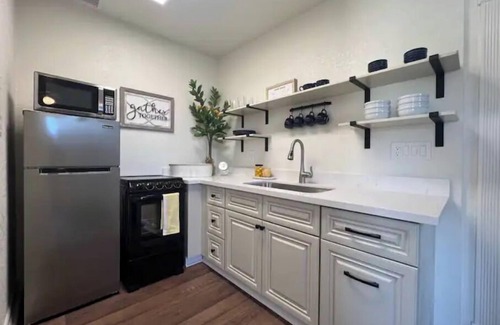 Our fresh new apartment is attached to our beautiful home but is completely private with its own entrance. You can park right in front of the home and head up your private outdoor staircase. Premium, cozy king sized bed and bedding and a fully stocked kitchen, washer and dryer and TVs in both the main room and the bedroom as well as a comfortable shower/tub make it easy to sit back and relax. Or, if you need to get some work done, we have a nice workspace with fast wifi and chargers for your needs. There is a full sized sleeper sofa that can easily be pulled out for any other guest you may have. Since this is a brand new sight, please let us know if you have any special needs or requests we may have overlooked and we are so happy to accommodate. Welcome ~ and feel free to stay a while!