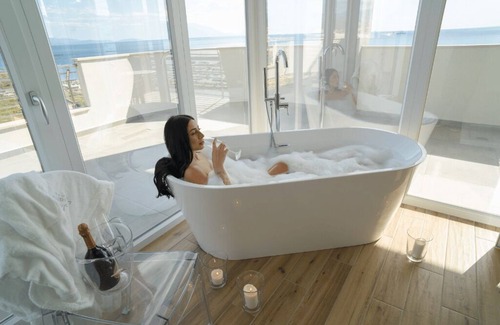 Il suo terrazzo abitabile è un vero gioiello che invita a rilassarsi immersi in un panorama mozzafiato, mentre i colori del cielo e del mare si fondono in un’armonia perfetta.