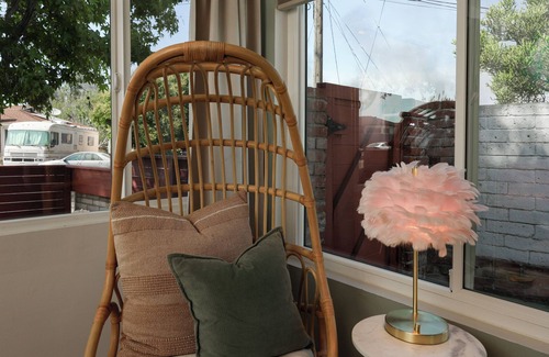Indulge in a serene San Diego escape featuring a private spa and elegant fire pit under the stars. Nestled in a tranquil very safe neighborhood yet minutes from pristine beaches in La Jolla and Coronado, the Zoo, SeaWorld, and Marine bases. This retreat offers a spacious backyard for cornhole, ping-pong, and other entertainment. Ample parking and a chef-ready kitchen make it perfect for gatherings. Experience refined comfort and unforgettable moments with bars and restaurants within 100 yards.