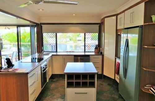 SUITED TO MULTI FAMILY STAYS - Brilliantly located, Huge Waterfront Mermaid Waters Property - up to 7 bedrooms (beds for up to 20+ adults, 3 bathrooms, air conditioned home, kitchen overlooking & opening to deck over water, granny flat with kitchenette, lounge opens to deck over water, rumpus room, large entertainment area & bbq over pool & water, lge plasma screen to lounge, foxtel to lounge, 100 latest dvd's, tv's & dvd players to all rooms. Undercover & secure parking for 5 cars. You will not be disappointed! Walk to Pacific Fair Qld's premier shopping centre 900m, Mermaid beach 1km, Burleigh Heads beach, theme parks 20 mins, Coolangatta (Gold Coast) Airport 25 mins, private jetty.