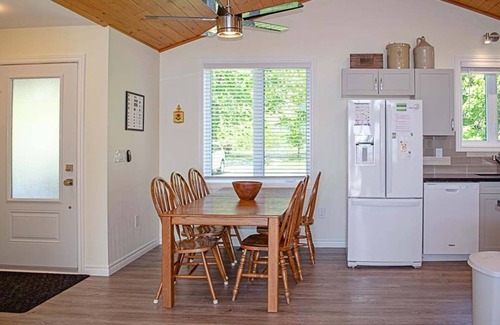 The cottage features a well-appointed kitchen with modern appliances and generous counter space overlooking the family room, ensuring whoever is preparing meals and snacks won't miss out on any fun.