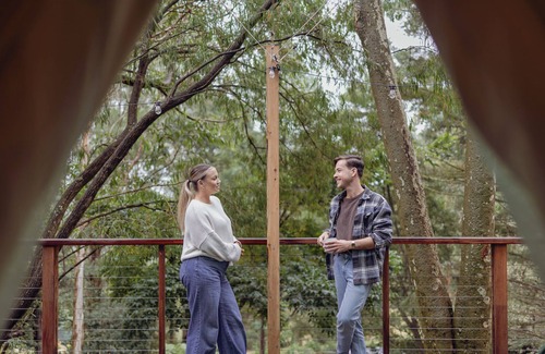 Welcome to the ultimate romantic glamping experience with private bathing and sauna. Just 90 minutes east of Melbourne in the heart of West Gippsland, and set high on the Strzelecki Ranges, our Supa Luxe Glamping Experience is the ideal place to rest and rejuvenate. Your Bedouin-style bell tent is the perfect escape, no matter the weather and is set on an expansive covered deck with views over the Spring. Here, you’ll also find your private BBQ, wood-burning pizza oven, fire pit and undercover dining area. Next to your tent stands your private, eco-friendly bathhouse, complete with a freestanding tub, shower, toilet, and hand basin. Your very own and private infrared sauna makes it the perfect place for extra relaxation. Luxurious robes and towels, complimentary slippers, and eco-friendly Ancient Earth toiletries are all on hand to enhance your bathing experience. Your accommodation, private outdoor spaces and bathhouse are hidden well away from other guests, allowing you to be fully captivated by the peace and tranquillity of this setting. With an 11 am checkout, there is even time to sleep in.