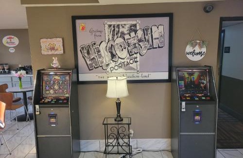 Located just off Interstate 39, this Wisconsin hotel is 4 miles from Portage Amtrak. It serves grab and go breakfast and expanded cable TV with HBO in every room. A refrigerator and coffee maker are provided in the traditionally decorated rooms at Super 8 Portage. There is also free Wi-Fi and a desk. Guests can make free local calls. The lobby at Portage Super 8 offers a business center. Games and puzzles are also available for guests. This hotel is a 9-minute drive from Cascade Mountain Pattern skiing and a 10-minute walk from Northridge Mall. The Wisconsin Dells are 17 miles away.