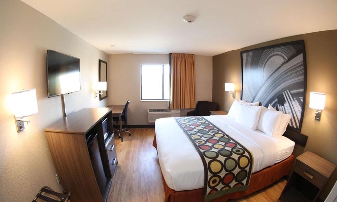 Super 8 by Wyndham Portsmouth provides accommodations in Portsmouth. With a shared lounge, the 2-star hotel has air-conditioned rooms with free WiFi, each with a private bathroom. The hotel has an indoor pool, hot tub and a 24-hour front desk. At the hotel, rooms have a desk. The rooms in Super 8 by Wyndham Portsmouth are equipped with a flat-screen TV and free toiletries. The accommodation offers a buffet or continental breakfast. A business center and vending machines with drinks are available on site at Super 8 by Wyndham Portsmouth. Tri-State Airport is 43 miles from the property.