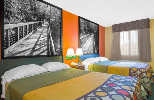 Super 8 by Wyndham Talladega AL offers 40 air-conditioned accommodations with coffee/tea makers and complimentary toiletries. Beds feature premium bedding. Flat-screen televisions come with premium cable channels. Guests can make use of the in-room refrigerators and microwaves. Bathrooms include shower/tub combinations.