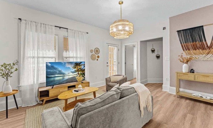 Relax in this 2BR/1BA boho-chic retreat on the shores of Lake Toho, just steps from Downtown Kissimmee. Perfect for up to 4 guests, it blends tranquil lakefront living with easy access to Orlando’s excitement.