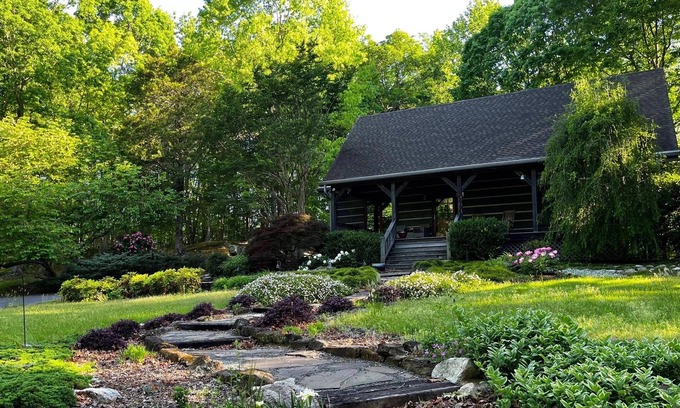 It has 1 master suite with one queen sized bed, walk-in closet, dresser, chest and 43” smart TV on the ground floor, 1 huge luxury bedroom with 1 queen sized bed, 1 sofa, chest, dresser, cabinet with fireplace, computer desk & chair and 2 closets & 1 loft with a queen bed, bookshelves and 2 storage spaces & the second full bathroom upstairs. The spacious living room has a fireplace, a new 65” Samsung smart TV, a new couch and coffee tables. The couch is a pullout couch bed. The well-equipped kitchen has everything you need to make delicious dishes including a new stainless steel double door refrigerator, a new stainless steel microwave, a new stainless steel dishwasher, a nice gas stove and oven, 2 coffee makers, toaster, kettle, blender and plenty of kitchen cabinets. The stainless steel BBQ grill is near the side door. The laundry room has a new Samsung stainless steel washer machine and dryer and an extra refrigerator. The luxury hot tub has 6 seats, ozone purification system, a digital backlit display, dual water feature and programmed LED underwater lighting, stylish panels and headrests. The garden is so perfectly beautiful. You and your loved one may sip cup of wine on the porch while enjoying the absolutely fabulous views, walk in the beautiful forests, fish/ do kayak on the pond, 100% relax in the luxury hot tub, read books on the outdoor chairs or bench, get fun on the swings or the hammock or the corn hole, axes throw, share some nice story near the firepit, or ride bicycles on the long private road or the long long trails in the private beautiful wood. Definitely you will get fully recharged and may really enjoy each moment with your loved ones in this real Paradise.