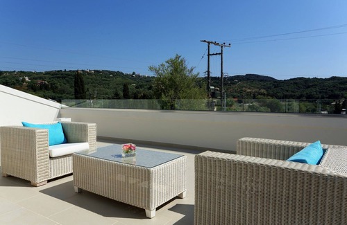 The Villais located in Arillas north of Corfu island, just 800 meters from the famous Arillas sandy beach, waiting to offer you the most beautiful holidays, in an atmosphere of complete peace, absolute privacy and discreet luxury. With 5 bedrooms, 4 bathrooms, spacious and fully equipped kitchen, dining room, living room and two large verandas with open sky, Villa Vozos is the perfect place for holidays in Corfu for families and groups of up to 10 people. A luxurious home, carefully designed up to the last detail, with all modern amenities, creates the ideal vacation home for your next holidays in the Greek islands.