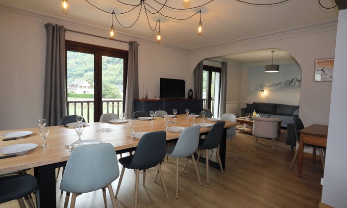 Superb 12-15 person apartment with garden is located in Luz-Saint-Sauveur. Superb 12-15 person apartment with garden provides accommodation, featuring Barbecue/Outdoor Cooking, Child Friendly, Parking, among other amenities. This Apartment features Barbecue/Outdoor Cooking, Child Friendly, Parking, to make your stay a comfortable one.