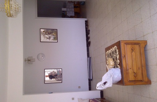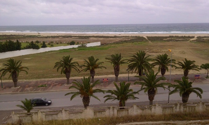 apartment 120 m2 3 bedrooms + very large living room two balconies one facing the beach and the sea the other on the kitchen side, fitted kitchen cutlery plates microwave small fridge hot plates 2 heads washing machine, air conditioning, electric shutters the only flaw we can say if it is a 4 th floor without elevator advantage you cross the road the beach and the sea 10 meters the historic city center with the souk shops shops administrations 10 minutes walk near several hotels and park short attraction a very very well located apartment