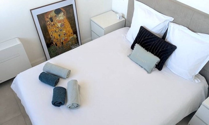 Amenities available include: high-speed WiFi (fiber optic), HD Smart TV with Netflix, washing machine, drying rack, bed and bath linen for 4 people. Parking spaces available.