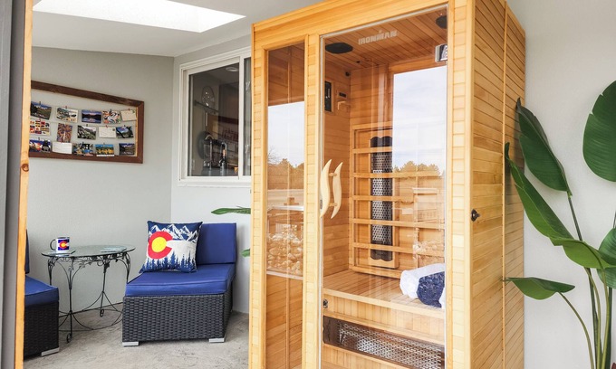 ◦ Relaxation meets Colorado charm – Sweat it out in the infrared sauna, then step onto the patio to grill, sip drinks from the indoor/outdoor bar, and gather around the fire pit under string lights.