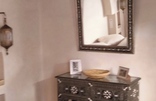 Relax on the deck or patio (enjoy the outdoor furniture!) of this riad. As for the great indoors, you can come inside and enjoy the WiFi and TV.