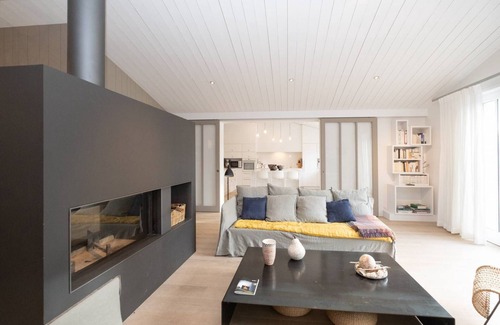 Cozy living room with a fireplace
