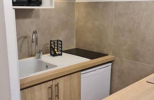 A living room, a sofa bed, and air conditioning are featured at this vacation rental. Connect to the WiFi, or get cozy in front of the TV. The kitchen is equipped with a refrigerator and a coffee maker. Other amenities include bed sheets and heating.