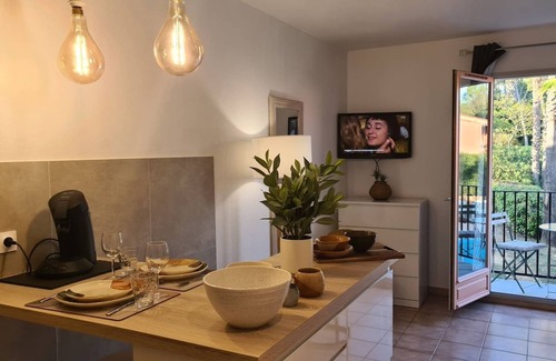 Superb golf-front studio with swimming pool is located in Mouans-Sartoux. Superb golf-front studio with swimming pool provides accommodation, featuring Air Conditioner, Parking, TV, among other amenities. This Apartment features Air Conditioner, Parking, TV, to make your stay a comfortable one.