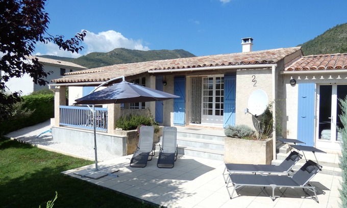 Cozy holiday house for 6 people in a unique setting. The house, located in a private domain, is surrounded by a spacious private garden with sun terrace and a covered terrace and is very close to the communal pool. The property is located in Castellane, a village at 730m altitude in the department of Alpes-de-Haute-Provence. The region is characterized by its unspoiled nature and the Gorges du Verdon.