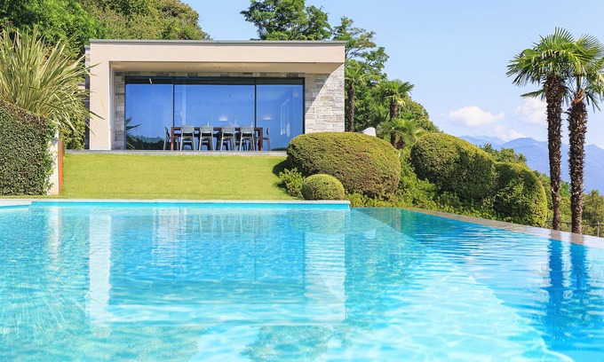 Superb modern villa with swimming pool and sweeping views over Lake Maggiore.