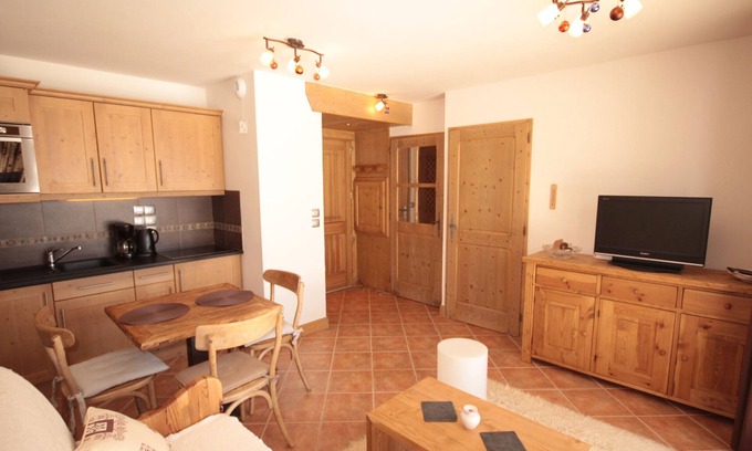 Facing: SOUTH, with superb panoramic views of the Beaufortain Massif! Extensive amenities: TV, Wi-Fi (subject to availability), ceramic hob, washing machine, dishwasher, combi oven, extractor hood, coffee maker, kettle, raclette grill, etc.