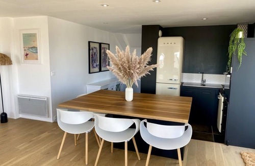 Superb penthouse with sea and lighthouse views is located in Penmarch. Superb penthouse with sea and lighthouse views provides accommodation, featuring Internet, Pet Friendly, View, among other amenities. This Apartment features Internet, Pet Friendly, View, to make your stay a comfortable one.