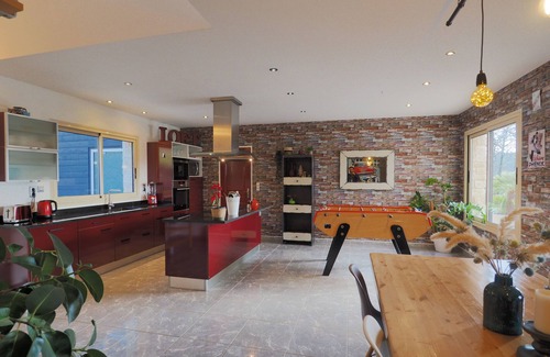 It is equipped with a living room, with a fitted kitchen / dining room, with a terrace and with a parking lot. It's located on the 3rd floor with a lift. Heating: individual gaz. Others: fireplace. composed of a games area with table football, lounge, dining room, and access to the front terrace and the covered patio.