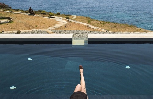 Villa Themis is an elegant 75m² property with minimalist, luxurious interiors and uninterrupted views of the Aegean Sea from every corner. Situated within a refined complex of six seafront suites and studios, this serene retreat offers exclusive access to a dark blue salt-electrolysis pool with an integrated jacuzzi. The villa is designed for guests seeking peace, privacy, and comfort, and is strictly available for adults only.