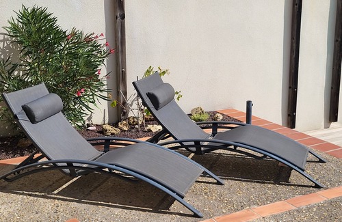 The Villa was purpose built a few years ago, it is now maturing beautifully into it's surroundings. The villa is fully furnished with comfortable seating for 4 adults inside or out in the living, dining and patio areas. There is satellite TV showing the main UK channels in addition to about 50 other channels, French TV channels are available via the installed Orange cable service and also a Bose sound-dock to play your own music. The villa also enjoys WiFi internet access with high speed fibre broadband. As it is built on a sloping site the villa is entered at first floor level. There is an open plan staircase down to the very spacious living / dining area. The open plan kitchen, fully equipped with fridge, freezer, oven, hob, microwave, dishwasher and washing machine adjoins this room. The master bedroom with large double bed and ensuite shower room is a mezzanine floor partially above this area and there is a further twin bedroom and house bathroom with bath and shower on the upper floor. There are South facing doors opening onto the comfortably furnished, very private patio and pool area with sun loungers for lazy days, a table and chairs for al fresco dining and a large parasol for when the sun is a little too strong.