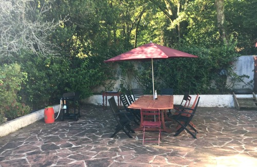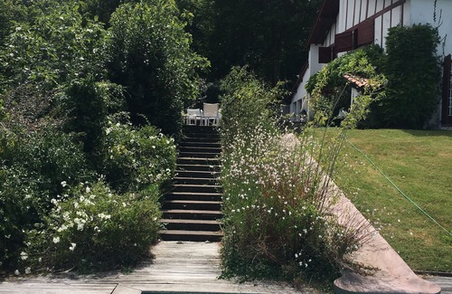 Authentic farmhouse Basque country completely renovated, nestled in a very large garden lined with oaks with two terraces, a pool, a waterslide, waterfall and pool house and a country of the pediment. On the ground floor 3 spacious, calm, autonomous because each bathroom, open to the garden and pool, large open space with lounge and fireplace and kitchen Sat. Upstairs are three bedrooms and three bathrooms, autonomous overlooking a magnificent forest of oaks giving an impression of calm and countryside, in addition, small reading room and TV and wifi. Comfort and charm to holiday several that protect your rest and autonomy of each.