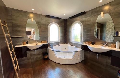 Superbe villa avec piscine privée à Fréjus - FR-1-466A-56 is located in Fréjus, just 1.9 miles from Frejus Beach and 2.9 miles from Saint-Raphaël Valescure Train Station. This property offers a private pool, free Wifi, and free private parking. Outdoor seating is also available at the villa. Featuring a terrace with garden views, this villa also includes a TV, a well-equipped kitchen with a dishwasher, an oven, and a microwave, as well as 4 bathrooms with a bath and a hair dryer. For added privacy, the accommodation features a private entrance. Guests can relax in the garden at the property. Chateau de Grimaud is 23 miles from Superbe villa avec piscine privée à Fréjus - FR-1-466A-56, while Le Pont des Fées is 23 miles from the property. Nice Côte d'Azur Airport is 35 miles away.