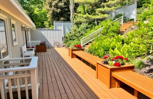 One of the highlights of our beach house is the huge deck that stretches across the back, providing a stunning vantage point to take in the breathtaking views of Lake Michigan and its mesmerizing sunsets. Inside, each room is thoughtfully designed with ample windows, ensuring that you can relish the beauty of the big lake from every corner of the house.