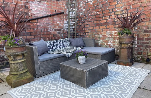 The newly fitted stylish modern kitchen comes with all the essentials you’ll need for your stay, including dishwasher, induction hob, built in microwave, oven & air fryer. We also provide a range of complimentary teas and cafetiere unless you want to head out to Costa . Outside there is a rustic courtyard which only gets limited sun in the afternoon but is a peaceful space to relax with a coffee and a newspaper.