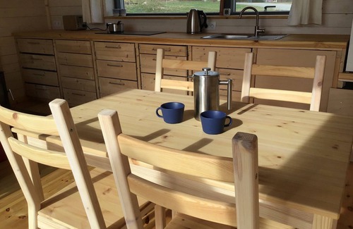 The kitchen is equipped with a stovetop, a refrigerator, and a dishwasher, as well as a coffee maker, an electric kettle, and cookware. Bathroom amenities include towels, toilet paper, and soap. And there's access to laundry facilities, so you can even pack a bit lighter. Other amenities include a fireplace, bed sheets, and heating.