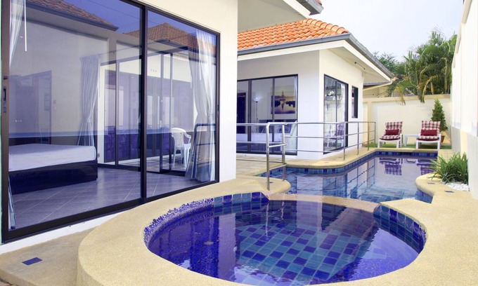 2-bedroom villa with private pool and jacuzzi. Conveniently located in Phratumnak Hill, the nearest area with villas to Walking street, approximately 2.5 km. The nearest beach Dong Tang is located in 700 meters from the villa. There is a local market, cafes, restaurants, pubs, convenience stores, everything in 5 minutes walk. The villa has 2-bedrooms wit en suite bathrooms, living room and a kitchen equipped wit refrigerator, cook and microwave oven.