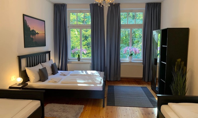 Welcome to the SUPERIOR Apartment in the charming Deutsche Villa, nestled in Rostock's picturesque landscape. This exquisite 130 m² accommodation on the first floor is perfect for families or groups, comfortably sleeping up to eight guests. With two well-appointed bedrooms and a spacious living area, this apartment blends modern comforts with a historic ambiance, making it a unique retreat for a relaxing getaway.
