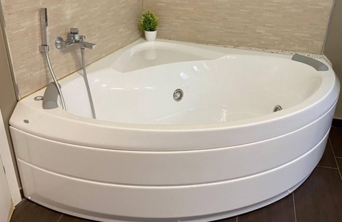 Un highlight esclusivo della camera è la vasca jacuzzi posizionata strategicamente nella zona notte, invitando gli ospiti a immergersi in momenti di puro relax e benessere privato. Il bagno, elegantemente attrezzato, dispone di una doccia moderna, completando l'esperienza di comfort con un tocco di praticità e stile.