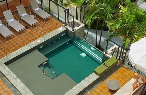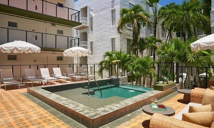 A few steps away on the stretch of beach. Relax by the plunge pool while sipping a mojito and taking in the cool Latin ambiance. At check-in, have a drink as we make you feel at home in our luxury suites and rooms with coastal breezes. In the center of South Beach's excitement, our hotel offers a tranquil refuge! At our South Beach resort, embrace tranquility and unwind by the outdoor plunge pool. Enjoy two free beach chairs and towels while lounging on South Beach's sparkling sands. Don't forget about the furry children! We welcome guests' companions to travel with them.