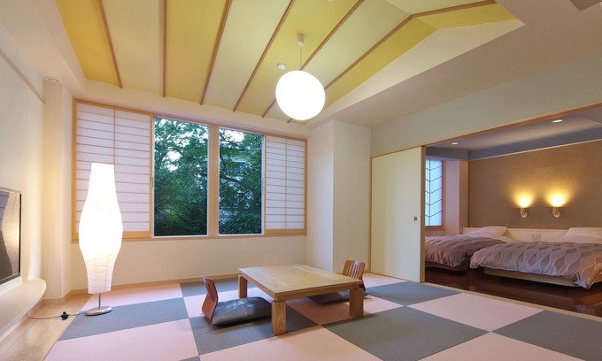 This room incorporates a new sense of modernity in a traditional Japanese design Relax in a relaxed Japanese style and stylish design space The Japanese and Western rooms can be separated until they can be separated so you can stay in a family or group of two or more generations A luxury bedroom that heals daily fatigue with high quality comfortable sleep and refreshing awakening created by mud walls Awaji light yellow soil
