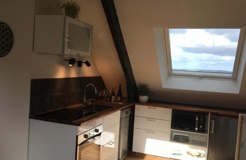 Providing a garden, Sur les hauteurs de Locronan provides accommodations in Locronan. This property offers access to a patio, free private parking, and free Wifi. The property offers barbecue facilities and outdoor furniture. Offering a terrace with mountain views, this apartment also has a flat-screen TV, a well-equipped kitchen with a dishwasher, an oven, and a microwave, as well as 1 bathroom with a walk-in shower and a hair dryer. For added privacy, the accommodation has a private entrance and soundproofing. A water park is available on-site, and both fishing and hiking can be enjoyed close to the apartment. Departmental Breton Museum is 11 miles from Sur les hauteurs de Locronan, while Quimper Train Station is 11 miles away.