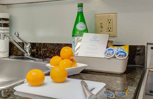 Please note: the business center, laundry room, fitness center and in-lobby cafe are not available to our guests. However, please note that there are convenient laundromats just a short drive away that accepts debit/credit cards.