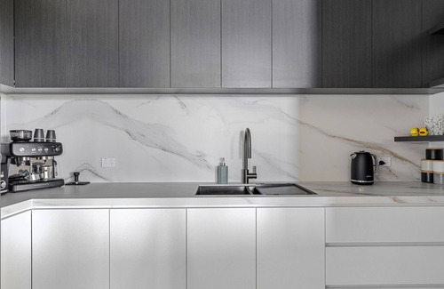 Upstairs, a generous open-plan living area awaits, complete with a kitchen, dining, and sitting area that flows out to a balcony. From here, you can sit back and enjoy the soothing sounds of the surf beach just beyond the coastal reserve. The entertainer’s kitchen is a chef’s delight, featuring a large stone island bench, an induction cooktop, and a butler's pantry equipped with a wine fridge, perfect for preparing meals or hosting guests.