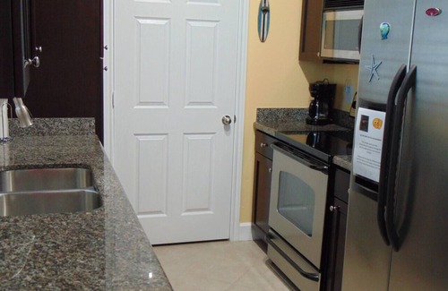 The bedroom is fit for a queen with a king-sized bed and it's own television. You can access the bathroom - with custom tiled shower - through the bedroom or the common areas of the condo (and for privacy can lock it from either location as well.) The large living room features a queen sized sleeper sofa, comfy seating for the entire group and a large flat panel television for catching up on the day's events or planning for tomorrow's. You'll love the kitchen with anything and everything you could need to prepare a home cooked meal or just warm up leftovers. Full sized appliances - including a washer & dryer, allow you to pack light for your trip or not take home dirty laundry - but only precious memories of your vacation at Surf's Up. We ask only that you shake all sand off your clothes before putting them in the washer, and clean the dryer filter often, please.