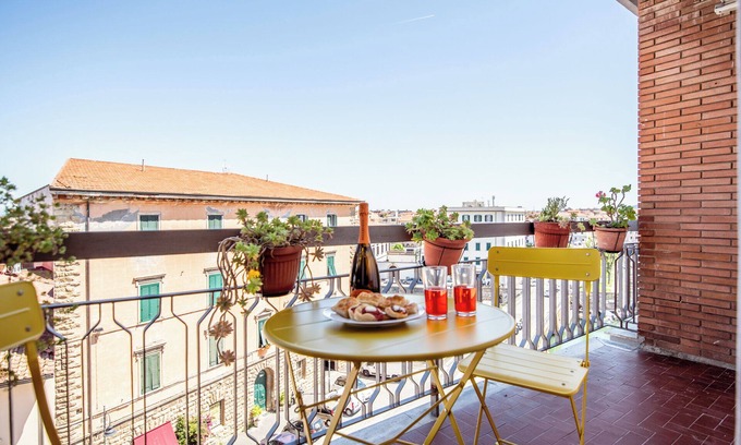This charming apartment can accommodate up to 4 people and is characterized by a unique atmosphere that combines the themes of music and surfing with the city of Livorno. Situated on the fifth floor, it welcomes you with two balconies offering spectacular views, perfect for enjoying a morning coffee or a sunset aperitif.