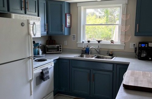 This property boasts a large private yard perfect for relaxing. It is located on the Surfside bike path less than a half mile to the beach. You can hear the surf while gathering around the outdoor fire, or watch the birds while having your morning coffee on the patio. There is also a well equipped kitchen and a gas grill if you wish to dine Al fresco. Fancy a cocktail? There is a well equipped bar for shaking things up. If relaxing at one of our beautiful beaches is on your list, beach chairs, beach towels, and a cooler are provided. Plenty of parking on site.